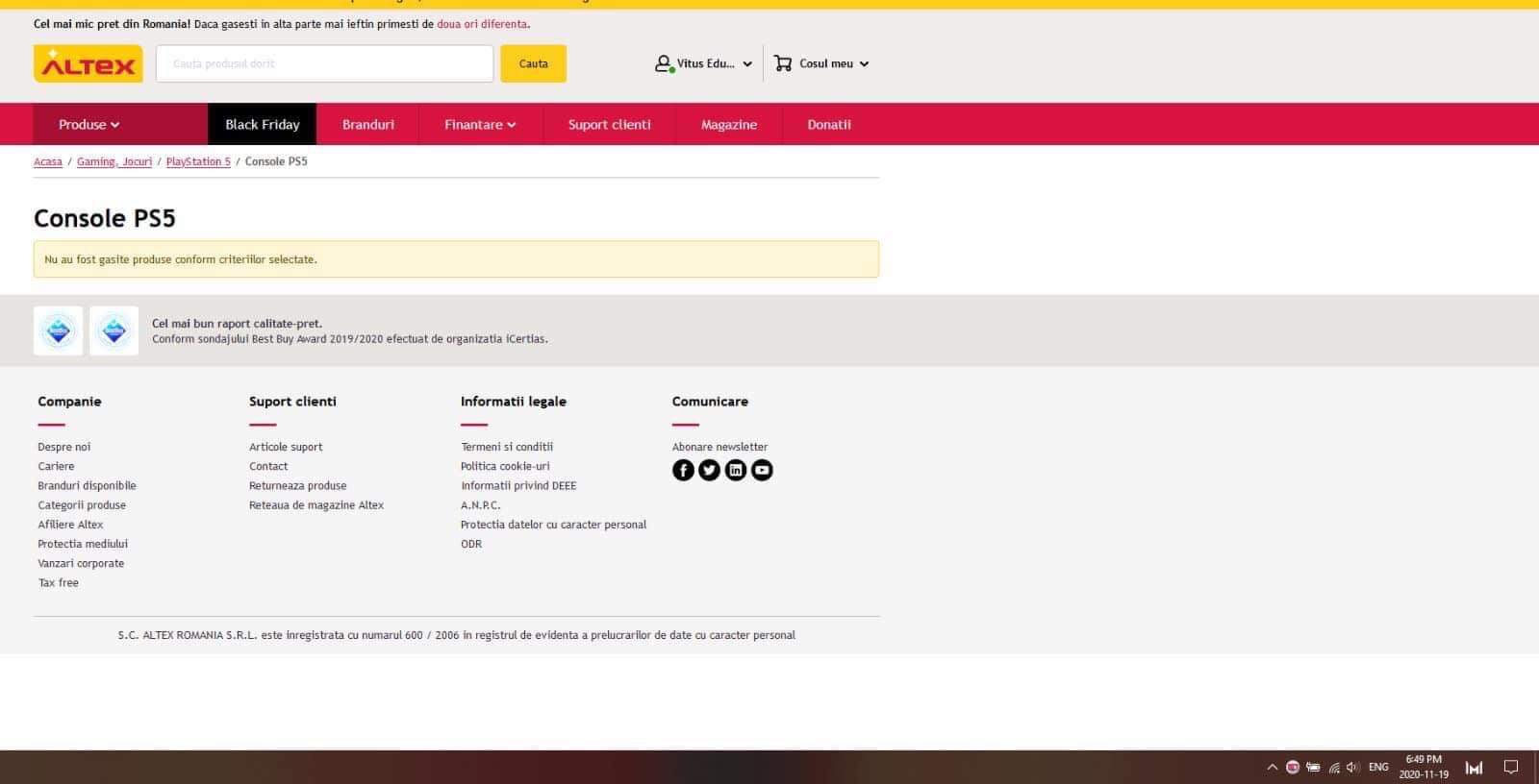 PS5 a fost deja lansat în România, pe data de 19 noiembrie. Deocamdată cei de la Altex nu au făcut nicio declarație în acest sens.